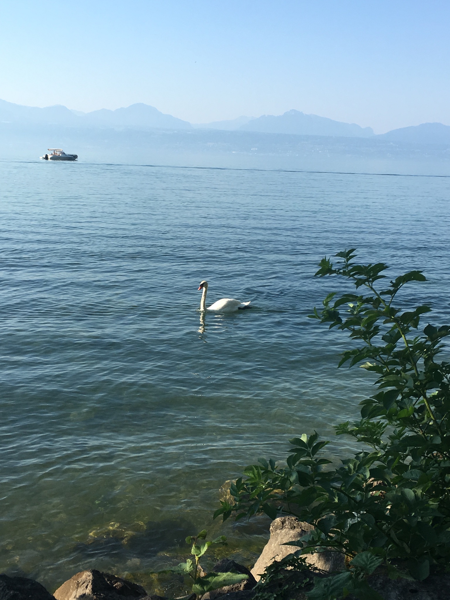After a double espresso from my own supply of instant coffee – and landlady Irene’s special brioche bread called cuchaule with jam and honey – Yannis, Rudy and I take the metro down the hills of Lausanne to a connecting bus, and then from the bus walk to Lake Geneva and along it for about half an hour west towards Yannis’ university campus that specializes in math, science and engineering called EPFL (École polytechnique fédérale de Lausanne) The lake is still and its surface smooth, sliced through only by the swans and the competitive canoe racers.