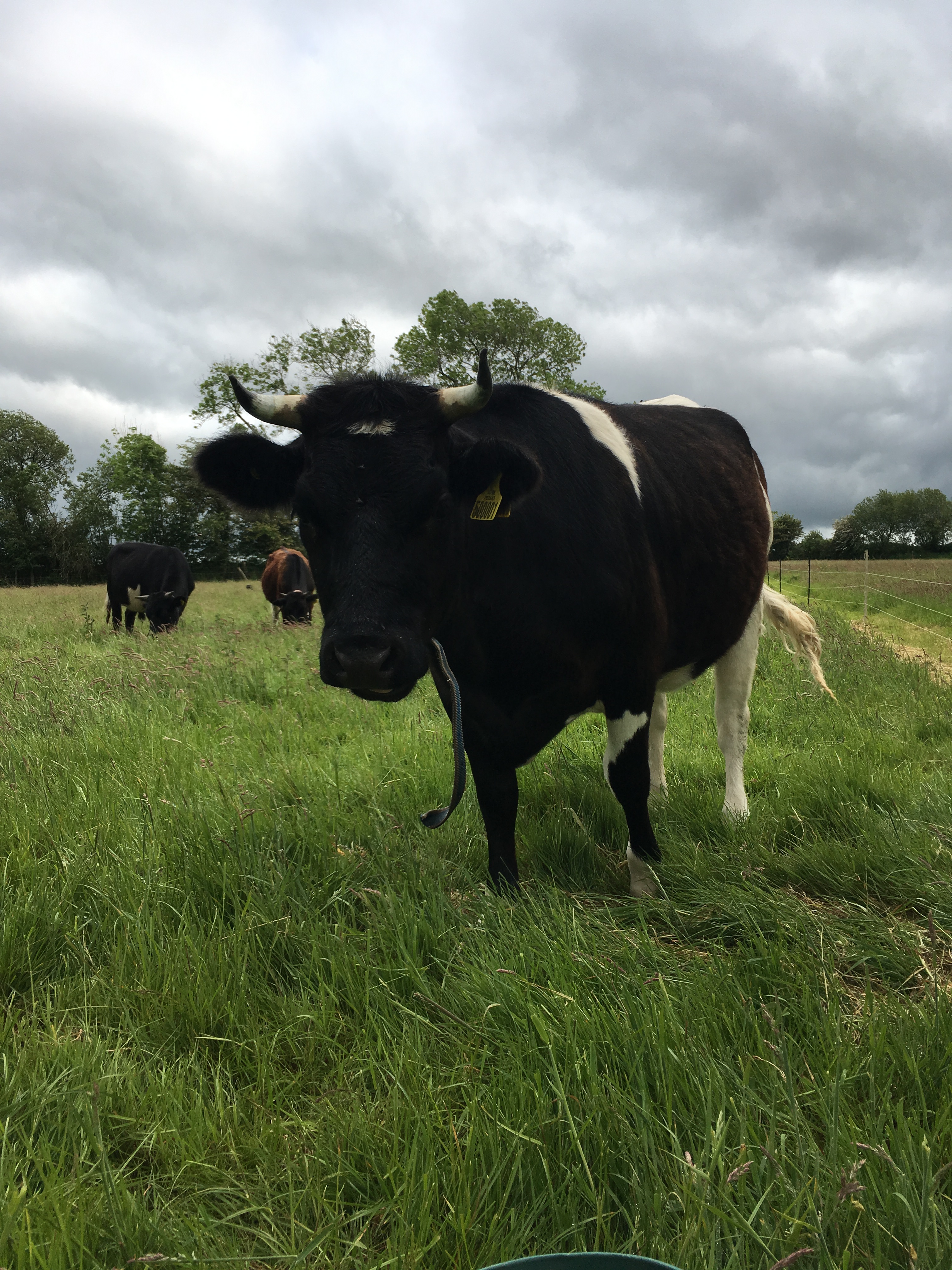 Suddenly, our instruction had been cut short – I had just completed my arc and wasn’t yet trying out the one, two dance when Michelle called for our help – the “young bull” had just jumped the fence into a neighbor’s field. Armed with a bucket of feed, a long wooden bar, equally long stick, and a rope with a noose at one end, we went up the field.