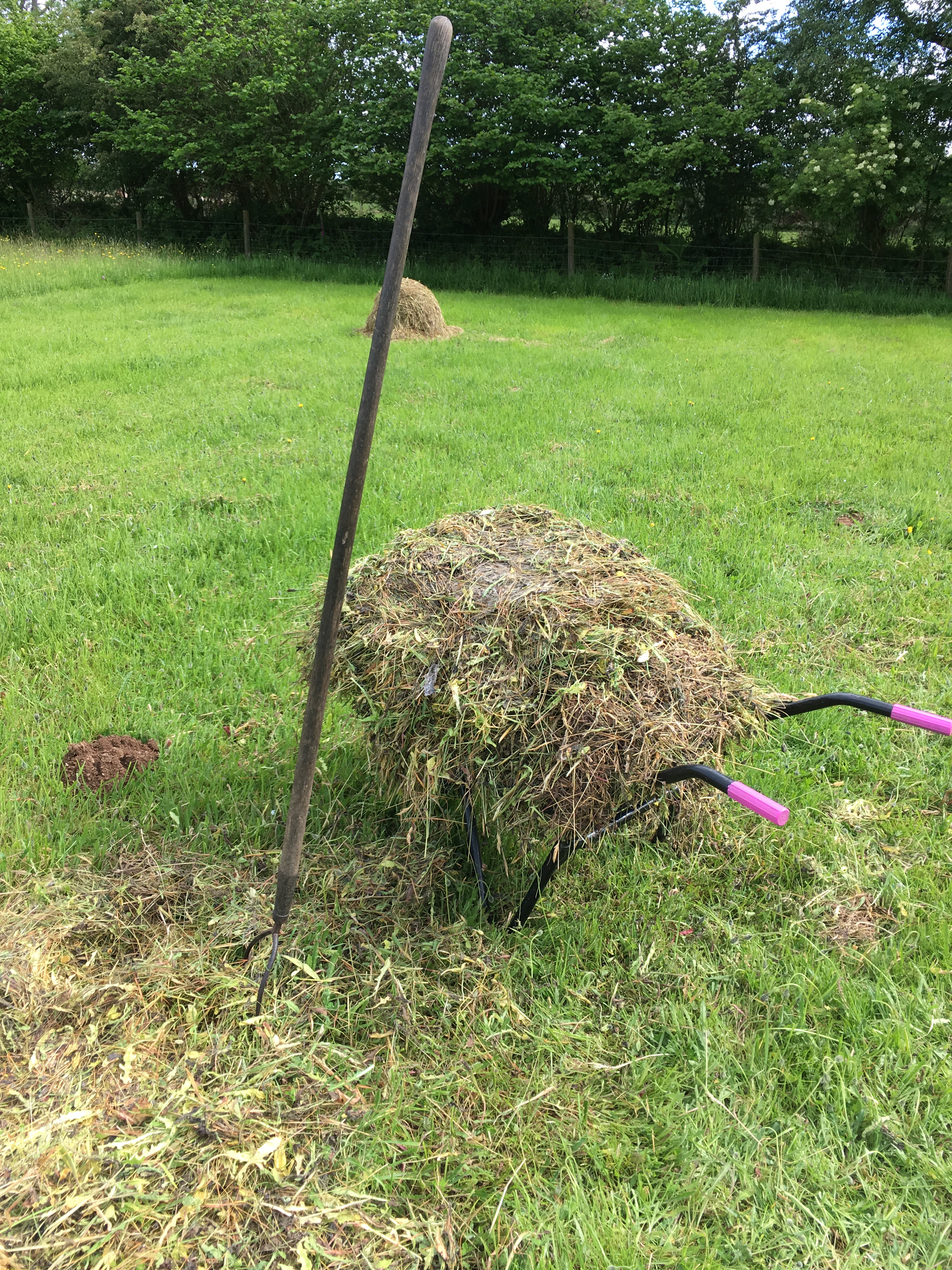 There are few activities one can do with wet grass, and besides watch it grow from a warm inside window, you guessed it, it’s scything. For whatever reason, it’s easier to cut. So P. thought it would be a perfect morning for me to scythe the other access path down to my caravan – this one wider and longer – and also scythe around the caravan and up to the other little path. I braced for what was in store, and in my always agreeable nature, feigned complete indifference to the cold wet bath waiting outside. Besides, I had my waterproof stuff on.