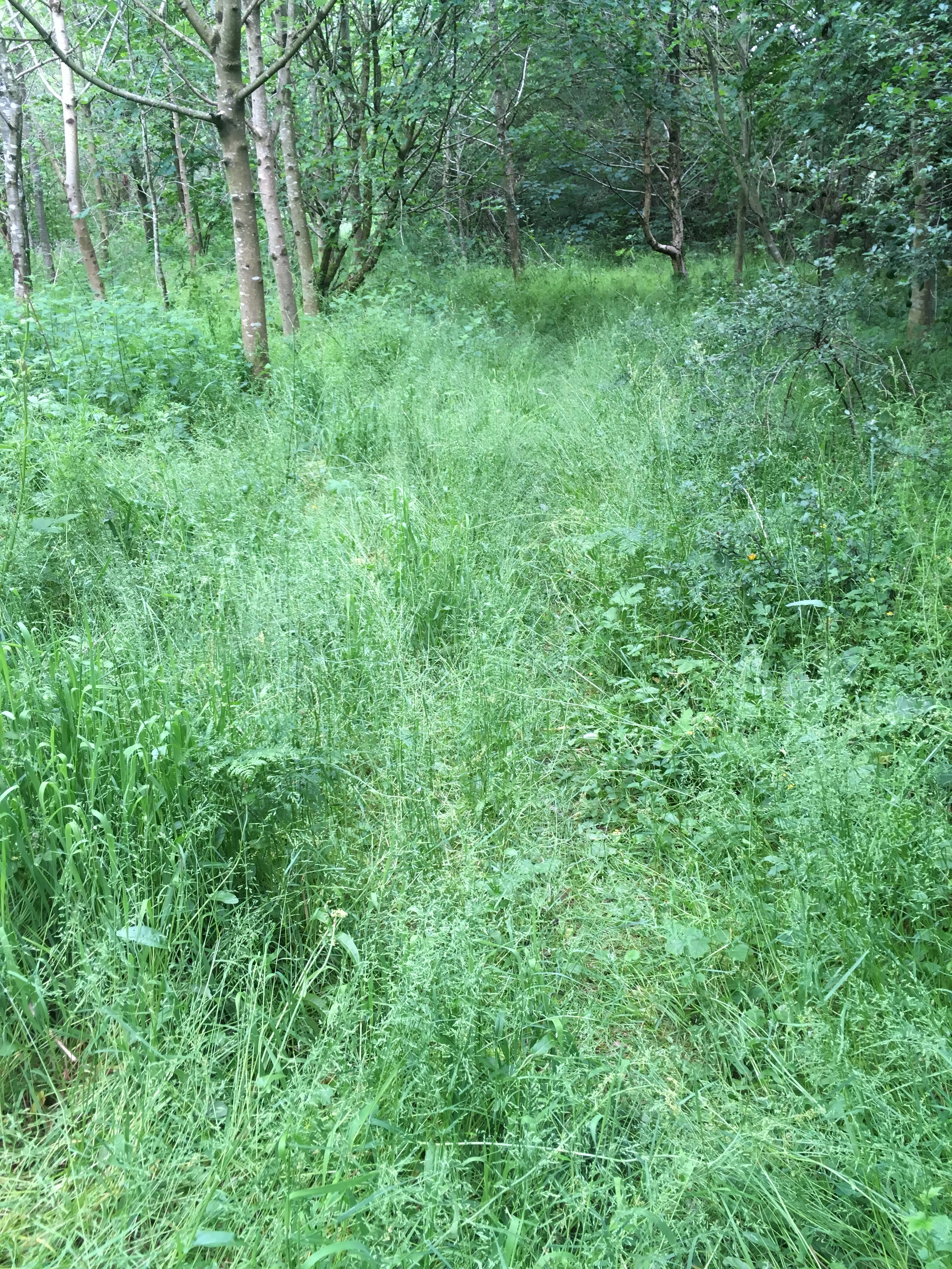 Now that the bull had been safely returned, scythe practice could start in earnest. After a delicious porridge – my taste buds are developing a keen sense of taste, and really getting to know a food’s true essence – I gathered my gloves, scythe, attached the whetting stone and pouch to my pant’s waste, and set off to mow the access road to the barn. I was psyched and determined to find the enthusiasm that drew scythe enthusiasts from far and wide to participate in P.’s workshops. There must be a joy that comes from slicing ultra thin blades of grass down to the quick with one fell swoop, and I intend to find it.