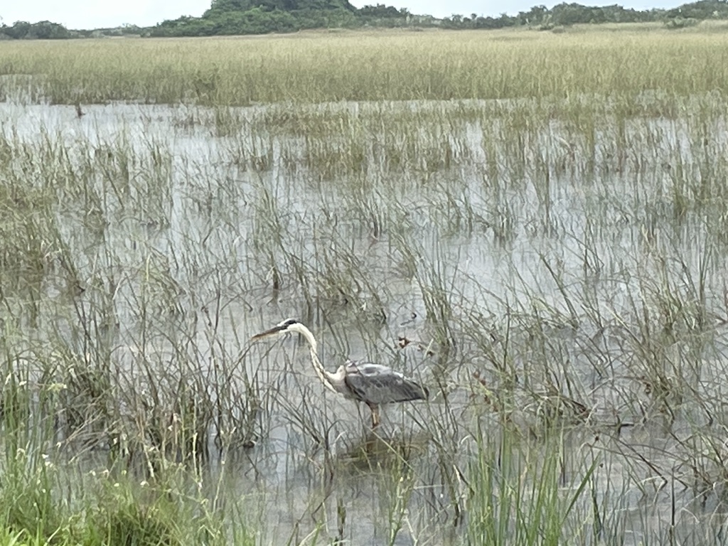 “Now, I need to go over the rules for you. Please listen. There is more than likely a chance that it will rain on your ride.” He pauses deliberately and with full presumption that this unwelcome and intrusive forecast will harm our experience in some way, but we both just stare at him waiting for the punch line. When nothing is returned his way, he continues. “You will get wet.” Again the pause, armed with appropriate well rehearsed explanations like it’s summer in Florida or this is not my prediction but that on any device or tv, or just look at the clouds. The possibility of getting wet is as benign a threat and as likely a possibility as the wind shifting direction. We wait impatiently for the other “rules” that might test our mettle out there in the wilderness. “Two: you will each need two to three bottles of water for hydration.” I do the math despite not being a math person. 14 miles? I finish a liter under the heat and sun by the end of 20. I’m wondering how this is translating to Y’s mathematical sensibilities. “We sell bottled water in the gift shop” – he points around his shoulder – “there is no water to fill up on the path.” Pause. Wait. Dual at dawn? “Third: If you have a problem with the bike or any other, wait for the volunteer in the trolley car, who can take you back, or a ranger. Do not leave the bike and walk.” Pause. I wonder who these bike-riding people are who need this advice. Chances are they do not do 25 miles in a rain storm. “Finally: stay on the path. Leave your bikes on the path when you take the boardwalk to the lookout tower. Take your belongings with you. The crows are smart and can open zippered bags.” Class is dismissed.