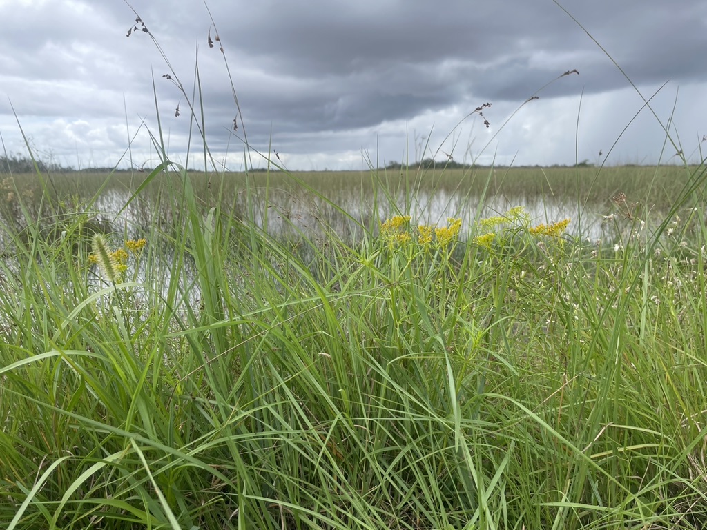 Time and space are illusions here, and it becomes apparent that both concepts are human constructions to make sense of and mentally coordinate a current physical placement. We are surrounded by rich, open swamps and savannas that grow riches out of silence, heat, sun, and water. What grows in silence and heat? The mind has a chance, finally, to expand and shift and shape itself just as the expansive moving universe. Space is essential. Space is here. The wide sky mimics the wide earth, splitting and sharing space; the sky shifts its clouds in form and color and mood; the earth moves its water through slowly, mixing salt and fresh; the sawgrass drinks the sloughs’ seeping freshwater; the pine and hardwood find root among the rocks and boulders left over from an ice age.