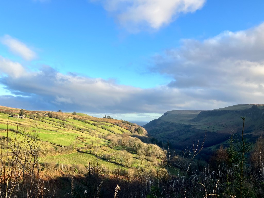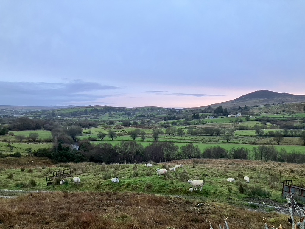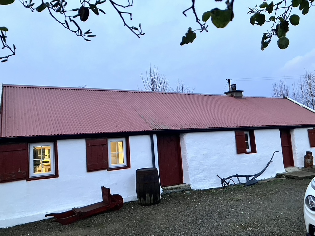 The Green gate became the marker for our next cottage out in the twilight of Stragally, near Ballybofey, County Donegal. With sparse daylight to spare, we left the main road from Ballybofey, a ten minute drive according to Google maps to this green gate of our next destination, but actually half an hour to the uninitiated. With a more accurate GPS, I felt more confident, but that green gate needed to be picked up by daylight, otherwise they would all look black. Most country roads allowed drivers speeds of up to 100 kilometers per hour which appear to wind ever more narrowly around bends and hills, the more north and rural we drove, making visibility for oncoming traffic evermore difficult and unpredictable. We may be driving for several minutes along such a road coasting at a cautious 40 km taking in the scenery and lulled by the rolling and dipping and the quaint one lane stone bridges long enough to believe we own this, we got this, only to be met head on with someone who actually does have it, this road, at this time, who wasn’t expecting the wandering rental car taking the air. But with heightened senses and caffeine jump started mornings, I was able to quickly react, and each of us quickly veered just slightly to our sides and one of us, usually (us), giving far more leeway than the other. Ding ding ding! went the car’s sensor. The surprises came from the rear as well. Springing out of nowhere, well, probably out from the sleepy hills and grassy, hidden driveways a car would appear with such speed into my rear view mirror it was likely they’d forgotten something they’d left up ahead, like a child or a sheep, because they came close enough to take chunks out of the rear in polite suggestion I hasten it along. On these occasions I pulled over where I found enough access to let them pass and get their kids to or from that grade school we pass on our way into town or to round up some sheep that sprang a fence. I can’t imagine a hurry for anything else out here. I thought I could always hear them, sighing in exasperation, saying finally! as they swerved around and on, taking the curves at a comfortable 100.