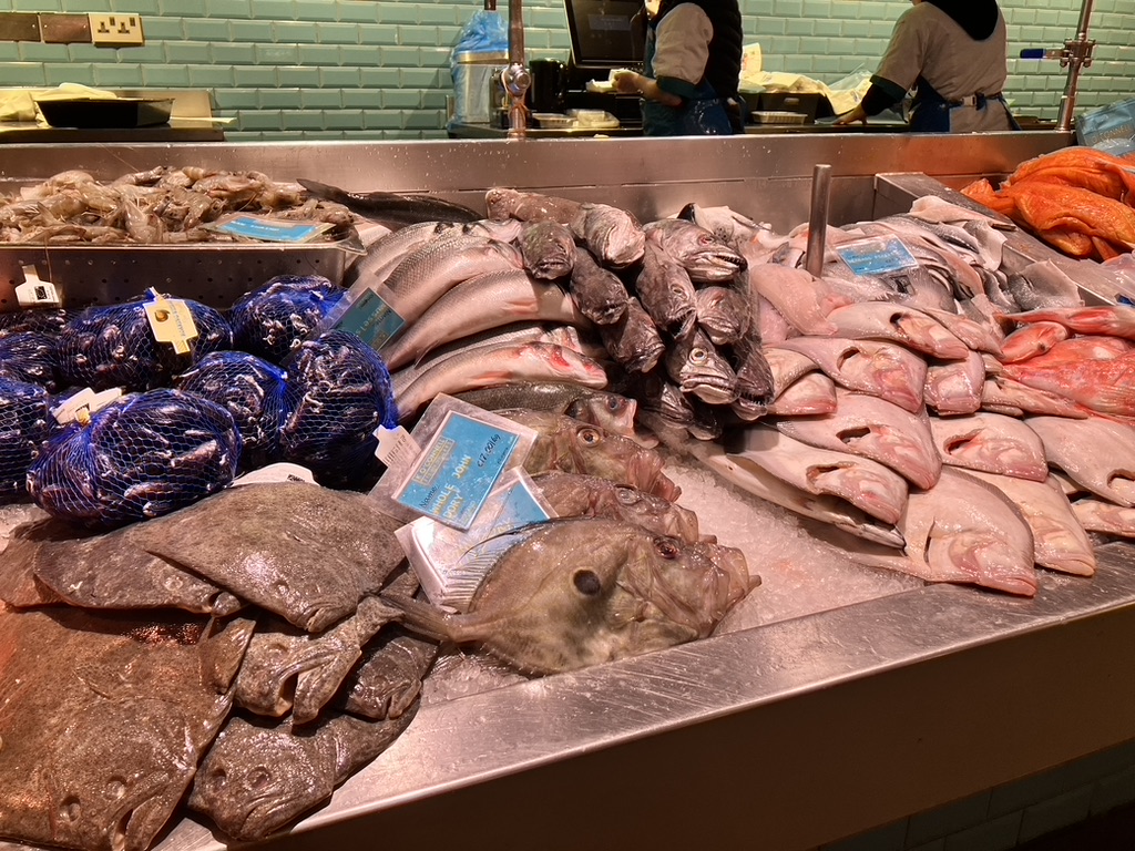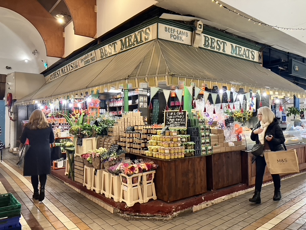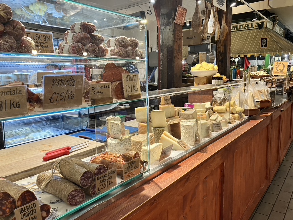 We came upon the “English Market”, a large indoor food and artisan shopping area taking up a downtown block. Butchers, fish and cheese mongers, produce sellers, ready made fish and meat pies, freshly made baked goods, florists, and the occasional artisan of crafts gives a distinctive nod to Cork’s culinary delights and merits. Full tongues of cows and their hooves ready for a boil; local fish of all sizes shapes and colors unrecognizable. Unable to leave without stopping by the ready food counters, we picked up a fish pie (made from a whole assortment of white and pink fish), a salmon and leek quiche for dinner later at the apartment, and a few wooden forks and spoons with which to eat it. I stopped and sat for a rich dark, three shot espresso Americano at the cafe, the smells of cured meats and pungent cheeses surrounding me.