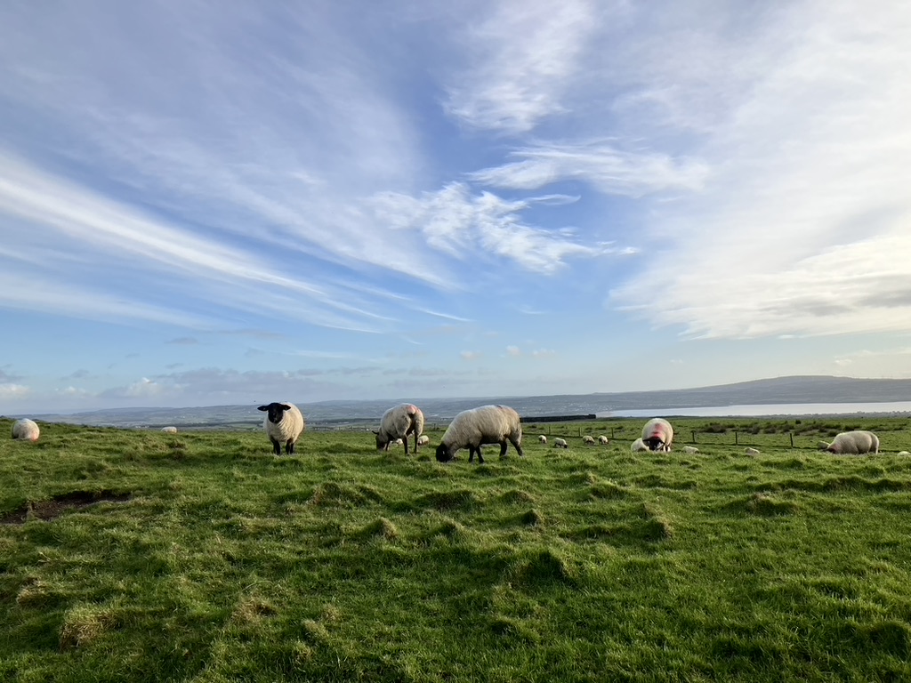 I downloaded the Google Map app that Ireland seemed to agree with best before we left Michelle’s to spend the day driving north to the Cliffs of Moher and the next B&B in Barna, a small suburb, just west of Galway city. The Shannon ferry brought us across the River Shannon, a long inlet from the Atlantic Ocean carving its way to Limerick. I wanted to do more of the WIld Atlantic Way, and stuck closer to the coastal roads than head back inland. The three legged dog Filligree watched as we hoisted the bags into the car; I bagged the rest of the cupcakes and off we went.