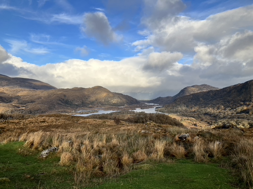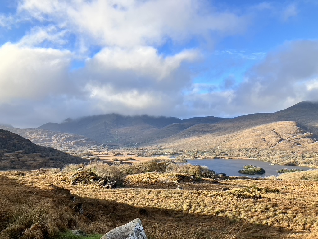 Many guides and guide books and itineraries exist for the Ring of Kerry, one of the top ten attractions to see in Ireland. The road outlines the Inveragh Peninsula, the next one down from Dingle, and can be driven clock or counterclockwise. Perhaps the most stunning route is to take it clockwise from Killarney, and catch the morning light rising onto and between the high hills of Killarney National Park, worth a complete day of exploring all on its own. Replete with lakes, meadows, hills, trails and an old castle or two, it speaks to the glory of nature. Very little needs to be added here that will compliment its beauty. Suffice it to say that on this day, the sky and land worked together to create the most specatcular views and impressions of nature I had yet to see in a long time.