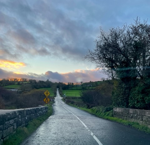 I had booked seven rental apartments along Ireland’s coasts and counties for our two week survey and finding our next apartment before dark became the mantra. Having chosen the first part of December to visit Ireland came with perks: access to attractions without reservations or throngs of summer season tourists, lower apartment and rental car prices, and indirect and sometimes direct contact with locals. Once we left Dublin, and to a greater extent Cork, the roads were relatively barren of traffic save for the delivery vans and farm trucks. This made driving the narrow, one lane roads into the heartlands of the counties quite pleasurable. However, December brought challenges as well. The ferry to the Aran Islands did not run, certain castles and museums were closed until March, and several cliff walks were closed due to the high winds. These were minor distractors, though, as every bend around Ireland offers something revealing to the senses and intellect. It was the diminished daylight of 54 degrees north latitude, flattened even further by the notorious cloud cover, the intermittent rain, the steady rain, and the misty rain that hindered opportunities to discover surprises on a spontaneous itinerary and flexible schedule. The times of the astronomical sunrise didn’t sound so bad but actual light and visibility with the aforementioned variables shortened this significantly – from around 7 hours of daylight to 6. All of which must be used to explore, walk, and drive to the next place before getting caught by the dark in the country without street lamps, lit signs, or as it turned out, a reliable navigational app. Of course, experience comes only after initiation.