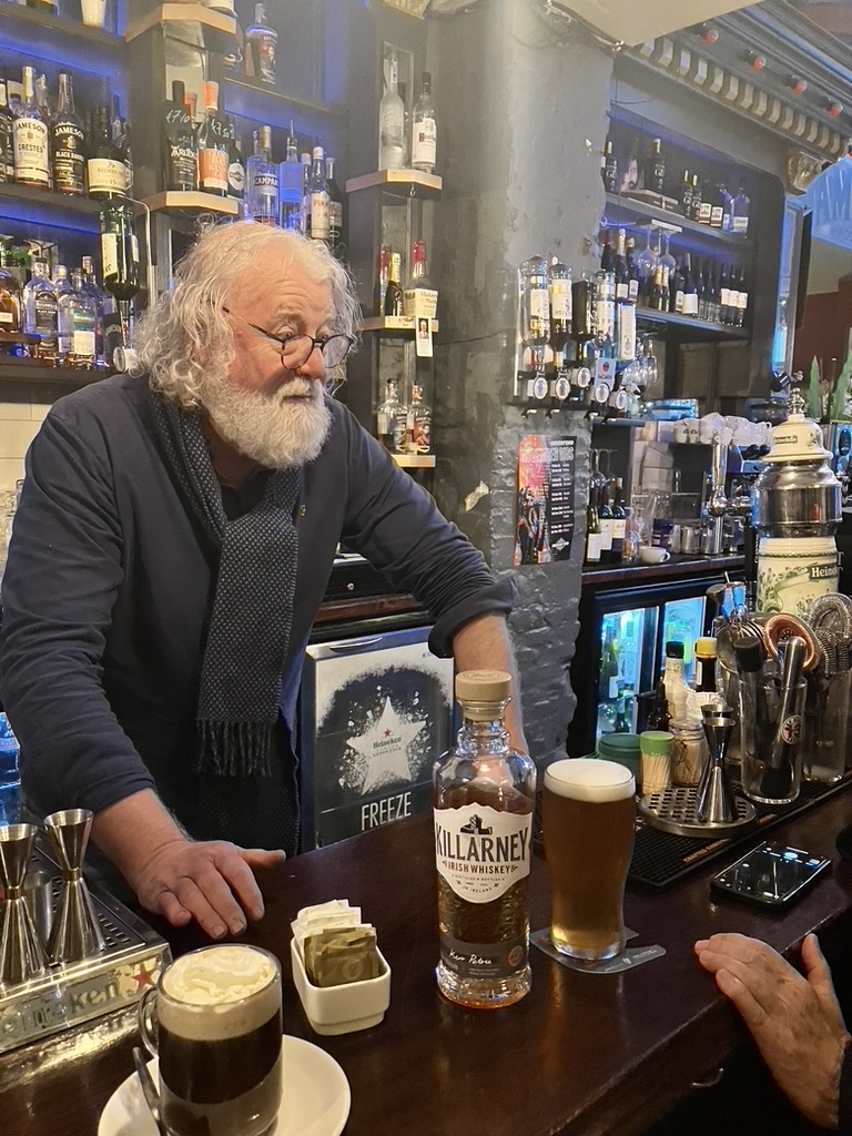 The next day, through St. Stephens park, along decorated Grafton street where we found Marks and Spencers for a takeaway salads and sandwiches and the snack bag, finding a bench in the Trinity College quad and watching the students, any age, the professors, bustling to class, coming from a lecture, chatting and sitting, laughing and hurrying their way through youth the city, and leave the thinking of it all to the older ones on the benches. The Irish all around; the proud spirit, the claim of putting a place on the map. That second night, a pint at the Temple Bar where a duo with guitars belted out 80s and 90s classics – all universally familiar – interspersed with Irish “drinking songs” that nearly everyone in the packed bar joined in to sing. At some point that day the luggage arrived already looking smaller and less important than when we checked it, a day ago, but so long ago. Adjusted now to bearings, time and weather (so we think), we check out the next morning and drag the bags along behind us.
