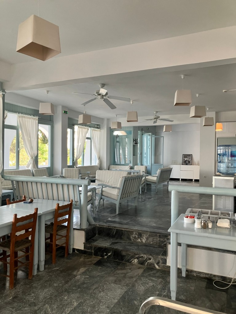 I return around nine o’clock, already feeling like a good chunk of the morning is passing us by and that surely something must be needing doing. I pass a hooded man lost behind a computer screen, sunken behind the reception counter. Entering the dining room, I find the obvious duo by overhearing their conversation and go over to introduce myself. One is overtly gregarious, from Switzerland, and the other steadfastly laconic, from a small town in northeastern Greece right by the Bulgarian and Turkish borders. After the where froms and where beens and how longs have been shared, I inquire after D, who was to show us around the hotel this morning. I hadn’t seen him at all yet. “He’s over there, at the desk,” says Switzerland. It was the hooded man, who I hadn’t even recognized. He could have been one of those basement recluses, dug deep into a video game or dark web surf, but it is likely he was researching his next big adventure, as when the three of us go up to him to find out what he’d like us to do, he says bluntly: “Take the day off. We’ll start tomorrow. I’m going to Athens today, to a cave seminar.” True to his word, he hastened out the door shortly before 2:00 pm leaving us with minor instructions: enjoy the island.