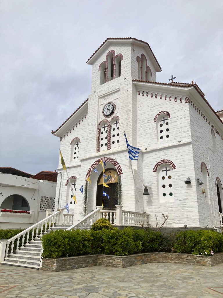 Like an off-broadway stage getting ready for theater season, Andros is placing the props, painting the backdrops, and rehearsing its lines to stage this 3 act play. Good Friday, Holy Saturday and Easter Sunday are the holiday; Easter Monday to recoup. I’ve never seen such a bonanza of excitement for a holy day. It’s like Mardi Gras and the 4th of July with a side of morality. The church rings its reminder on the minute this Good Friday from St. Phillipe up on the hill. On Saturday, the priests chant prayers transmitted through loudspeakers at the morning mass, voices that transcend the valley, climb the hills, seep into homes and kafeneons. By the Saturday night mass, you should feel your allotment of grace and mercy siphon through sufficiently enough for the libations to flow and the delivery of food on party sized platters.