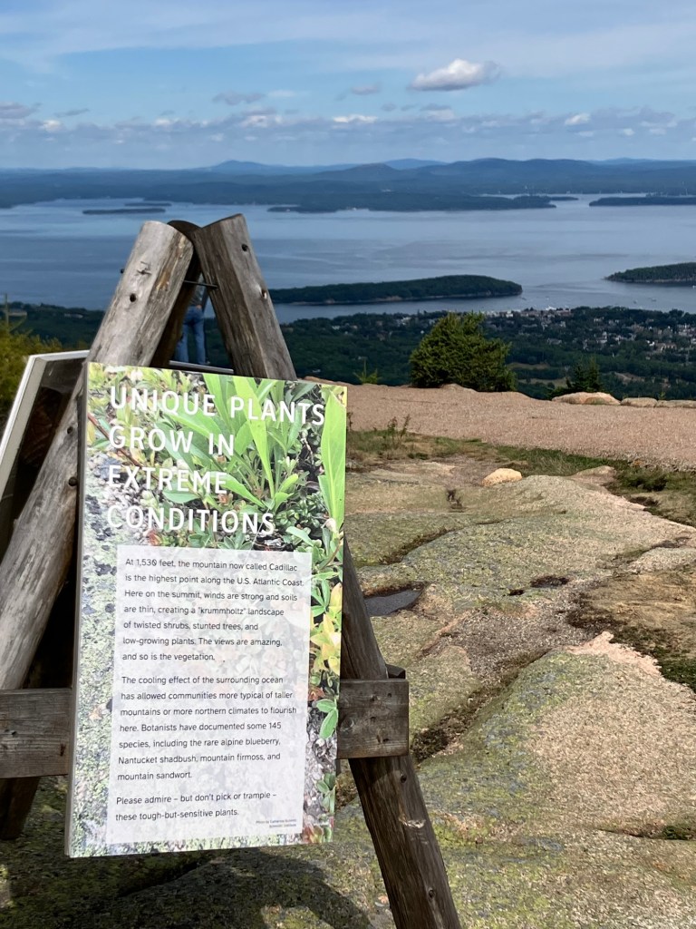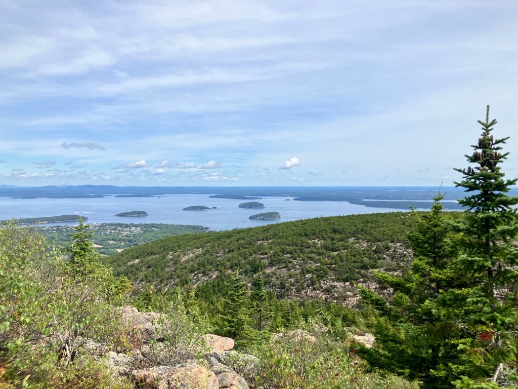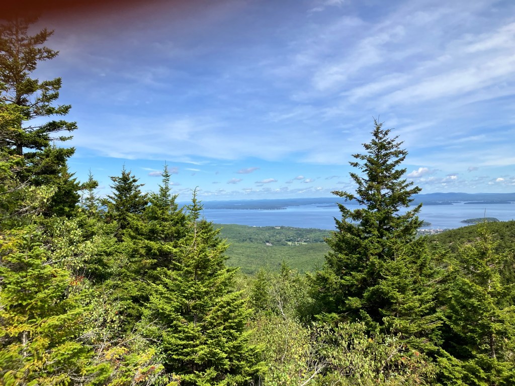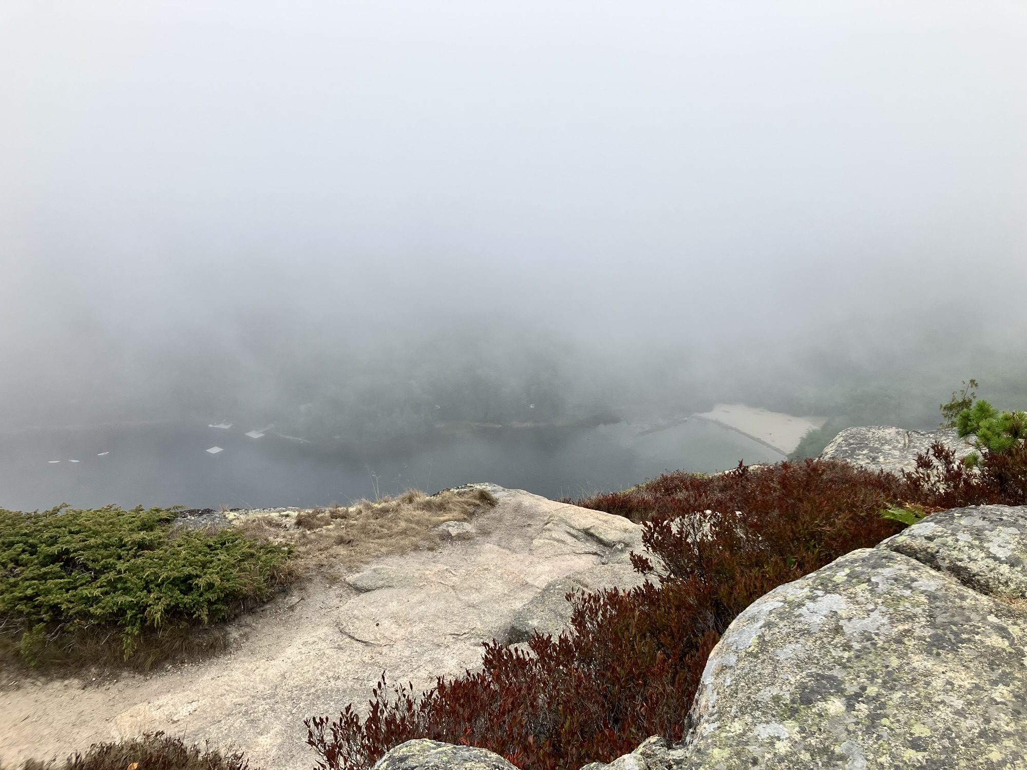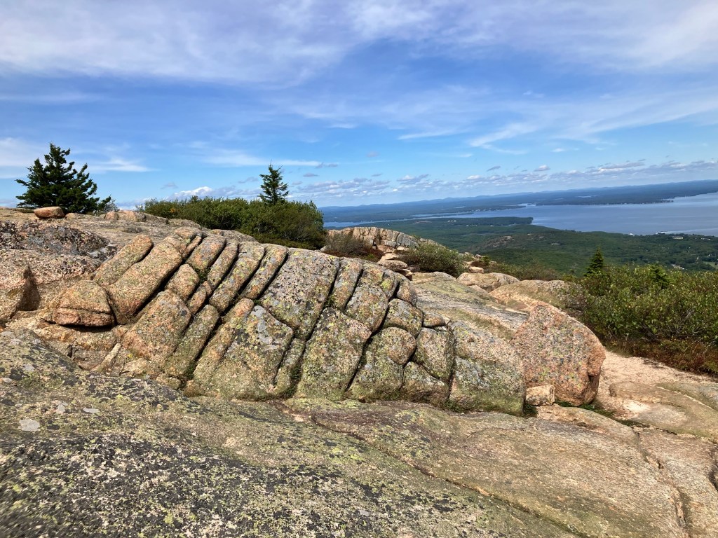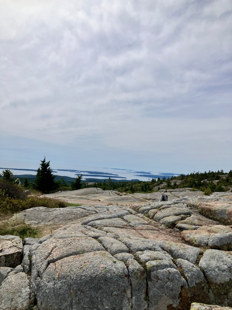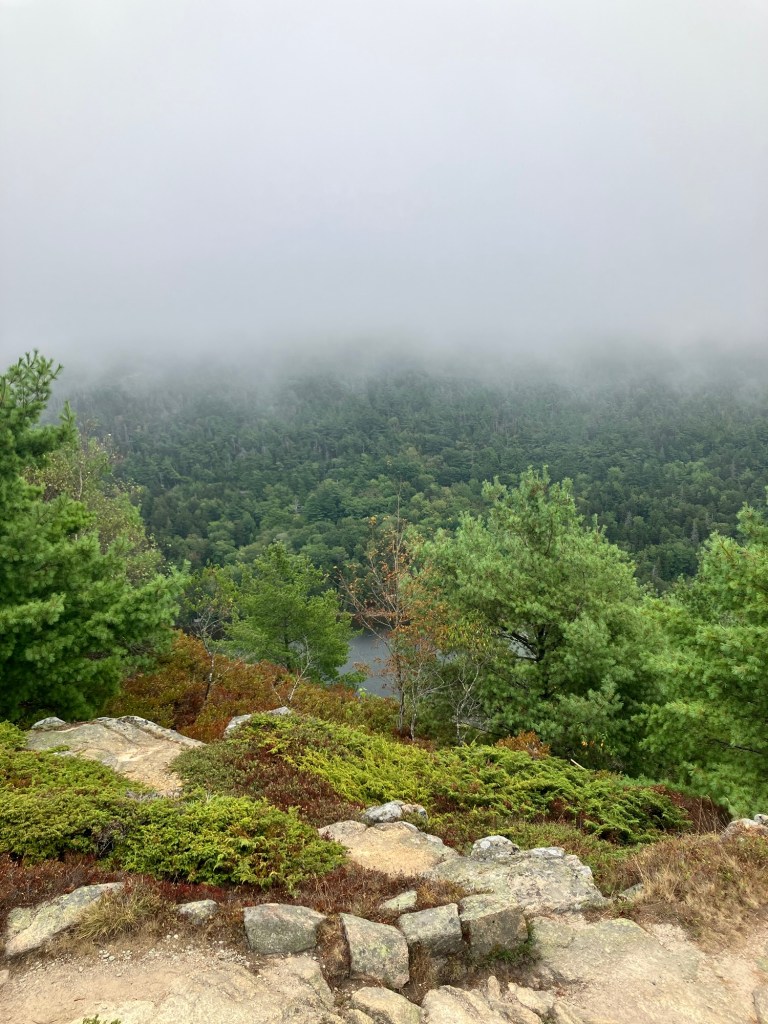The top of Cadillac Mountain is a hopscotch of flat granite boulders that has points of view onto all sides of the park, a panoramic perspective. The sky is clear of clouds and mist on this day making visibility once again reliable and orienting. We are sighted creatures, after all, and our eyes gravitate to what we know. We lead them to what is familiar. The Atlantic Ocean glistens its blue and wraps around inlets and shores of the peninsula. It appears gentle and embracing; from up here its thrashing temper is no more. Dorr Mountain appears less formidable and more diminutive. Eagle Lake only a puddle far below. Bar Harbor is still safely a small town. Seeing something other than what we recognize may challenge our comfort level but looking at it from a panoramic perspective asks us to look at something deeper and differently. It opens up vistas and reveals the courage we need to stifle and silence the fear that hijacks reason. We are incumbents of our own office and stewards of innate sense, and can stand up to the fear of uncertainty and confusion that may surround us, whether we’re in the fog or in the clear.