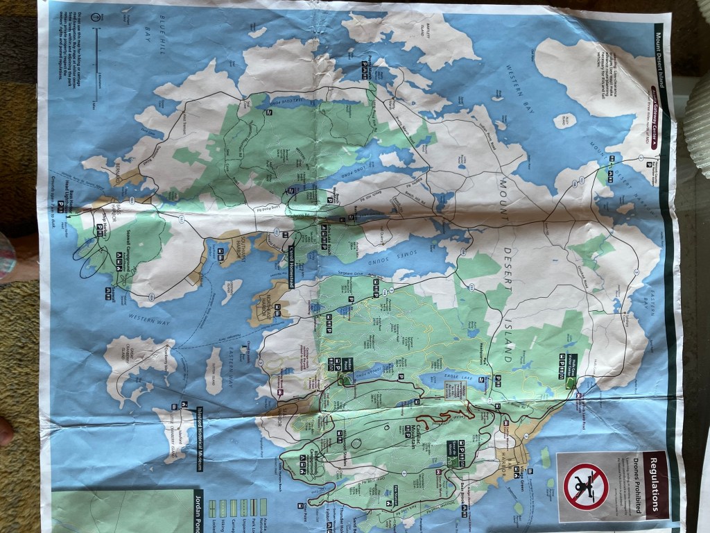 Route 1 leads us eventually into Ellsworth, Maine, established in the 1700s but founded in 1869 for its timber and water power. Situated 30 miles north of Acadia National Park, it’s a small town with a big task: to get the park goers fed and stocked up on food, L.L.Bean clothing, and outdoor sports gear. Two defining streets intersect the town: historic Main Street offering a choice of pub restaurants, antique stores and coffee shops, and Oak Street, Route 3, that bears the heavier retail traffic for the two large food stores, hardware, outlets and camping supplies, all conveniently found on the way down to the park. Follow this road, and 25 minutes later Route 3 splits and provides access to the east and west sides of Mount Desert Island, where the previous millennia’s glaciers and land shifting formed modern day Acadia.